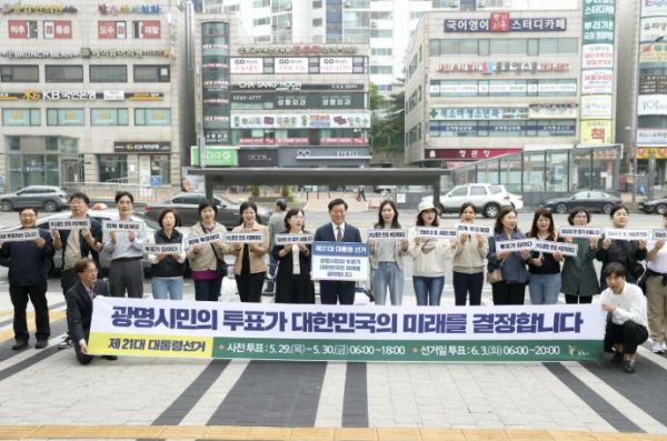 한편, 광명시에는 오는 5월 29일과 30일에 동별로 사전투표소 19개소를 운영하며, 오는 6월 3일 본투표일에는 총 77개소의 투표소를 마련할 계획이다.