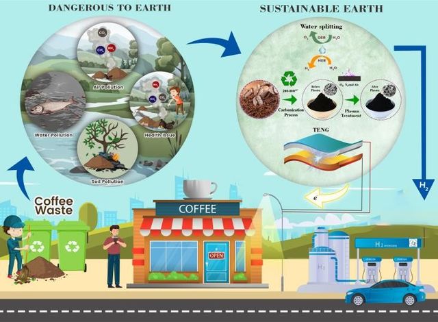 연구팀은 버려지는 커피 찌꺼기를 활용해 카본 소재를 제작해 다양한 전기적인 특성을 최초로 규명했고, 이러한 특성을 이용해 환경에 강한 마찰전기 나노발전소자와 수소 생산용 전해조 등 전자소자들에 최초로 적용해 나노 에너지 논문에 게재했다.
