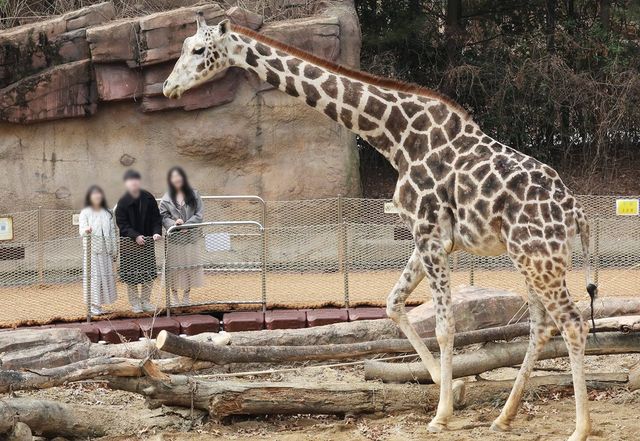 동물원을 찾은 시민들이 기린을 보고 있다. 기린은 동물원에서 인기가 있는 동물이다. 기사 이해를 돕기 위한 자료 사진 / 연합뉴스