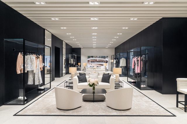 높은 층고와 커다란 창, 화사하고 따듯한 베이지 톤의 석재를 사용해 개방감을 주는 부티크는 하우스의 최신 레디-투-웨어 컬렉션을 비롯해 슈즈, 백, 액세서리, 워치, 화인 주얼리를 선보입니다. 공간은 세 개의 넓은 살롱을 연결하는 구조로 이루어져 있어요. 가장 먼저 보이는 것은 하우스의 2025 코코 비치 컬렉션과 2025 봄-여름 레디-투-웨어 컬렉션과 아이코닉 백 컬렉션.