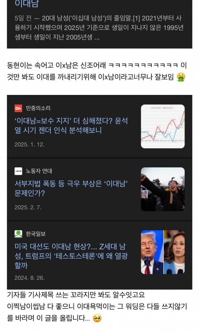 “이대남”이라는 명칭은 주류 언론에 의해 만들어졌으며