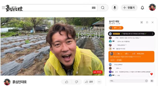 '흙심인대호'는 MBC 아나운서 출신 김대호의 '프리 선언' 이후 첫 단독 웹 예능으로, 이날 김대호는 촬영 도중 라이브 방송을 진행해 구독자들과 소통하는 시간을 가졌다.