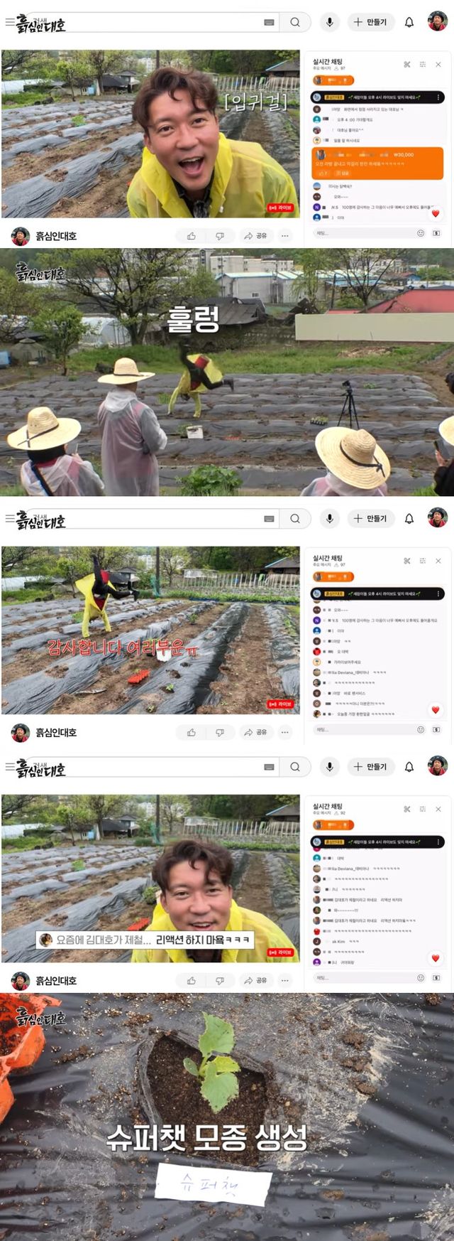 이후 김대호는 자신이 심던 모종에 '슈퍼챗'이라는 이름을 붙였고, 이어 "여기서 나온 거는 슈퍼챗 주신 분 드리겠다"며 너스레를 떨었다.
