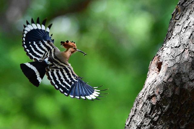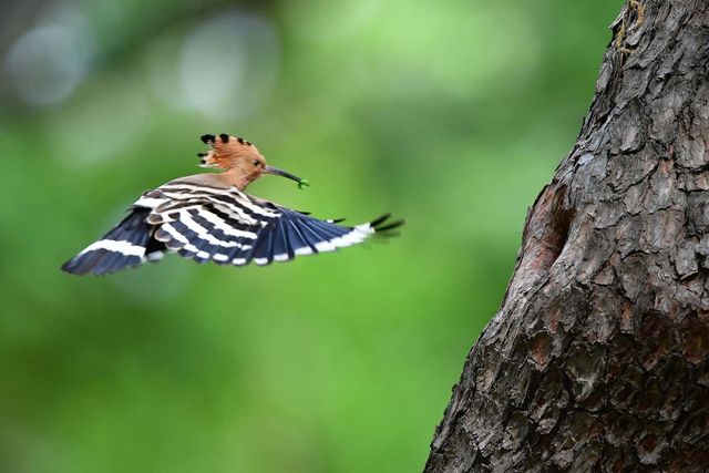 가정의 달 5월 첫 날인 1일 경북 경주시 황성공원 고목에 둥지를 튼 후투티가 먹잇감을 물어오고 있다. /뉴스1(2025.5.1)