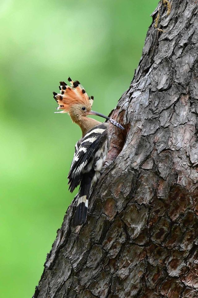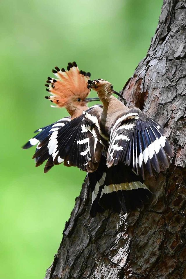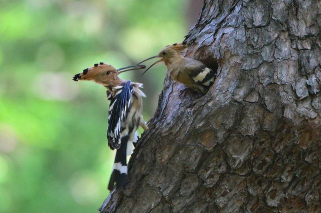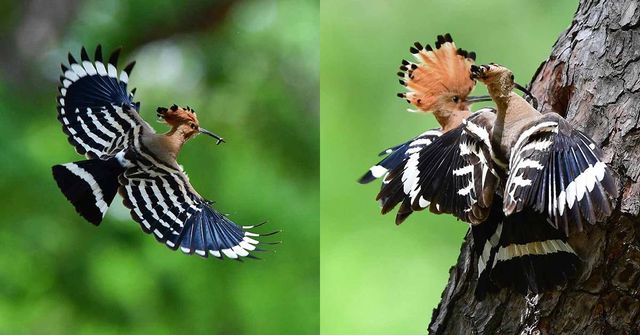 4일 경북 경주시 황성공원에서 후투티 한 쌍이 둥지에 있는 새끼들에게 먹잇감을 부지런히 물어다 나르고 있다. / 뉴스1(2025.5.4)