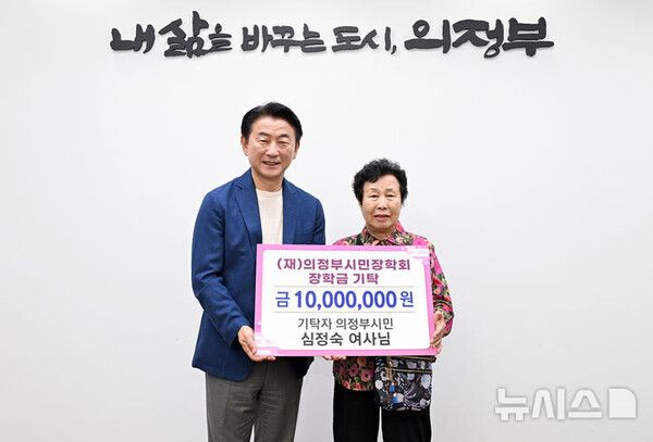 뉴시스 보도에 따르면, 16일 의정부시에 따르면 지난 15일 89세 노인 심정숙씨가 의정부시장학회에 장학금 1000만원을 기탁했다.