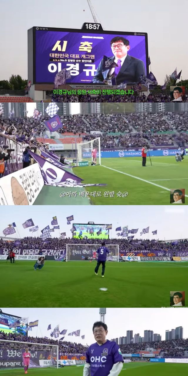 해당 영상에서 이경규는 "태어나 처음으로 시축이란 걸 해봤다"며 사위 김영찬의 소속팀 FC안양의 경기 시축에 나섰다.