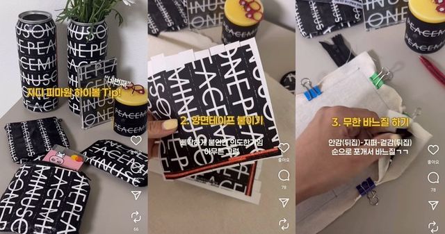 심지어 SNS 속 영상에는 캔 라벨을 벗기고 천을 덧대어 지갑 만드는 방법을 소개하고 있다. 해당 영상에는 '명품지갑이 됐다', '따라서 만들어야겠다' 등 긍정적인 반응이 잇달았다.