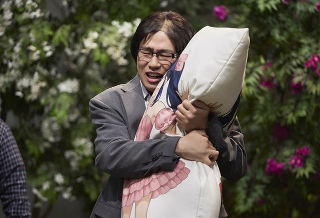 공개된 스틸에는 퍼플 컬러의 가발과 컬러 렌즈, 반짝이는 메이크업을 뽐내는 비주얼 아이돌로 변신한 안재홍이 길거리 팬미팅을 여는 모습부터, 드라마 ‘마스크걸’ 속 ‘주오남’을 셀프 패러디한 파격적인 장면까지 담겨 있다. 특히 탈모 가발을 쓰고 만화 캐릭터가 프린트된 대형 쿠션을 애지중지하는 ‘오타쿠’ 캐릭터로의 메소드 연기는 이번 7화의 웃음 수위를 기대하게 만든다.