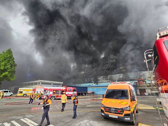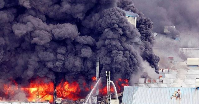 이번 화재로 발생한 시커먼 연기가 공장 인근 지역을 짙게 뒤덮었고, 인근 도로는 전면 통제됐다.