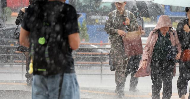 지난 16일 서울역 일대에 강한 비가 내리고 있는 모습. / 연합뉴스