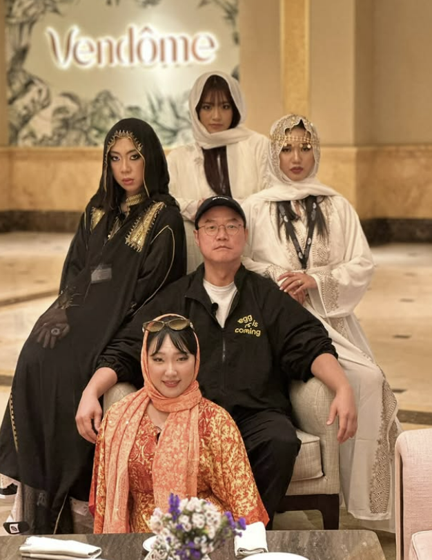 공개된 사진 속에는 나영석 PD와 ‘뿅뿅 지구오락실’의 이은지, 이영지, 미미, 안유진의 모습이 담겼다. 나영석 PD는 1인 소파 앉아 마치 왕 같은 근엄한 표정을 지었고, ‘지락실’ 멤버들은 제각기 아부다비 현지인 의상을 입고 그를 둘러싸고 앉았다.