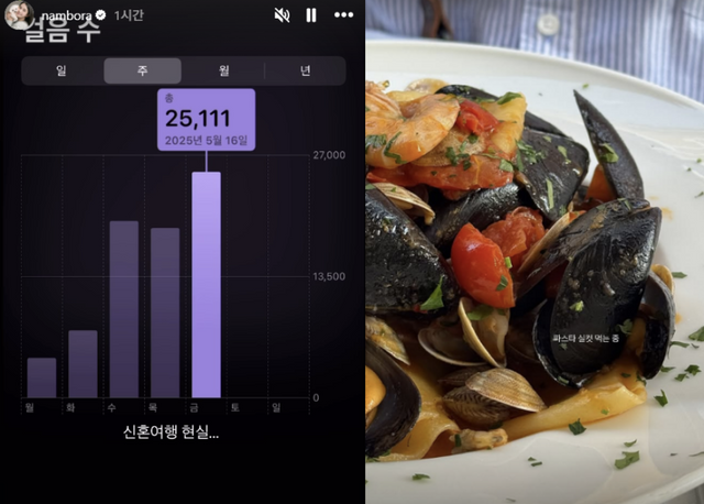 또 남보라는 “파스타 실컷 먹는 중”이라며 종류별 파스타 사진을 공개하는가 하면, ‘손흥민 닮은꼴’이라고 애정을 표했던 남편과 함께 젤라또를 먹는 손 모습도 올렸다.
