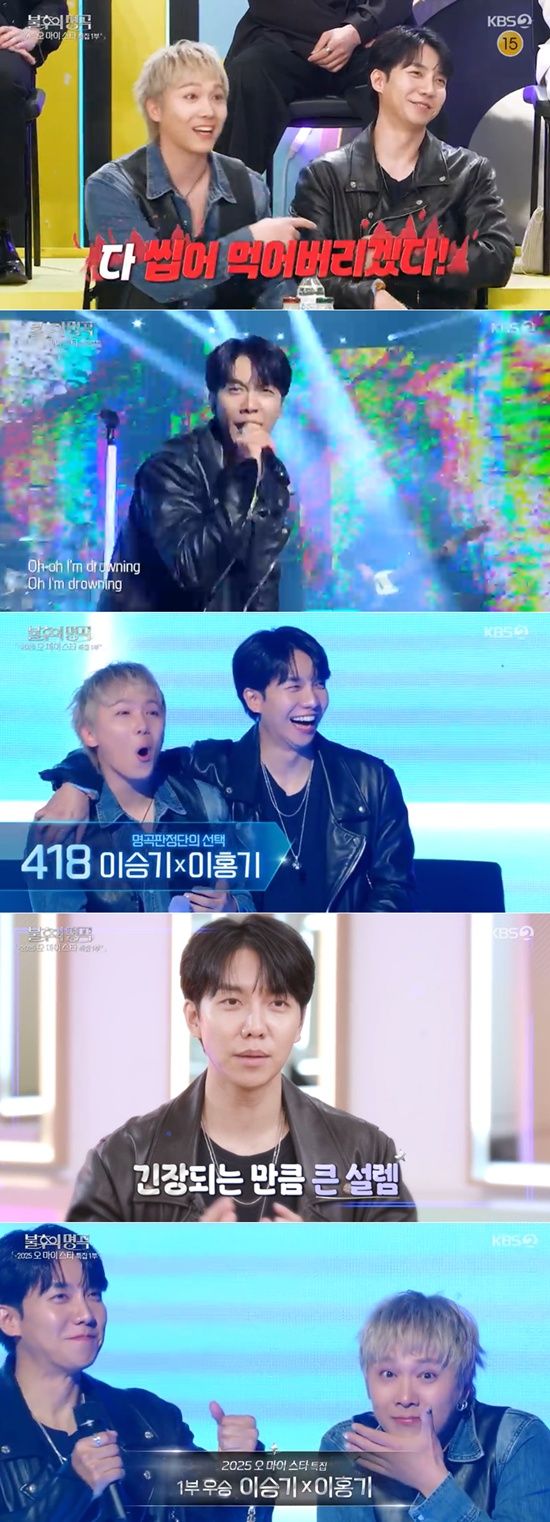 17일 방송된 KBS 2TV '불후의 명곡'은 '2025 오 마이 스타' 특집으로 진행된 가운데 김준수·최수호, 홍자·이수연, BMK·조째즈, 최성수·안성훈 등 화려한 라인업이 무대를 빛냈다. 그중에서도 이승기와 이홍기의 첫 듀엣 경연 무대가 뜨거운 관심을 모았다.