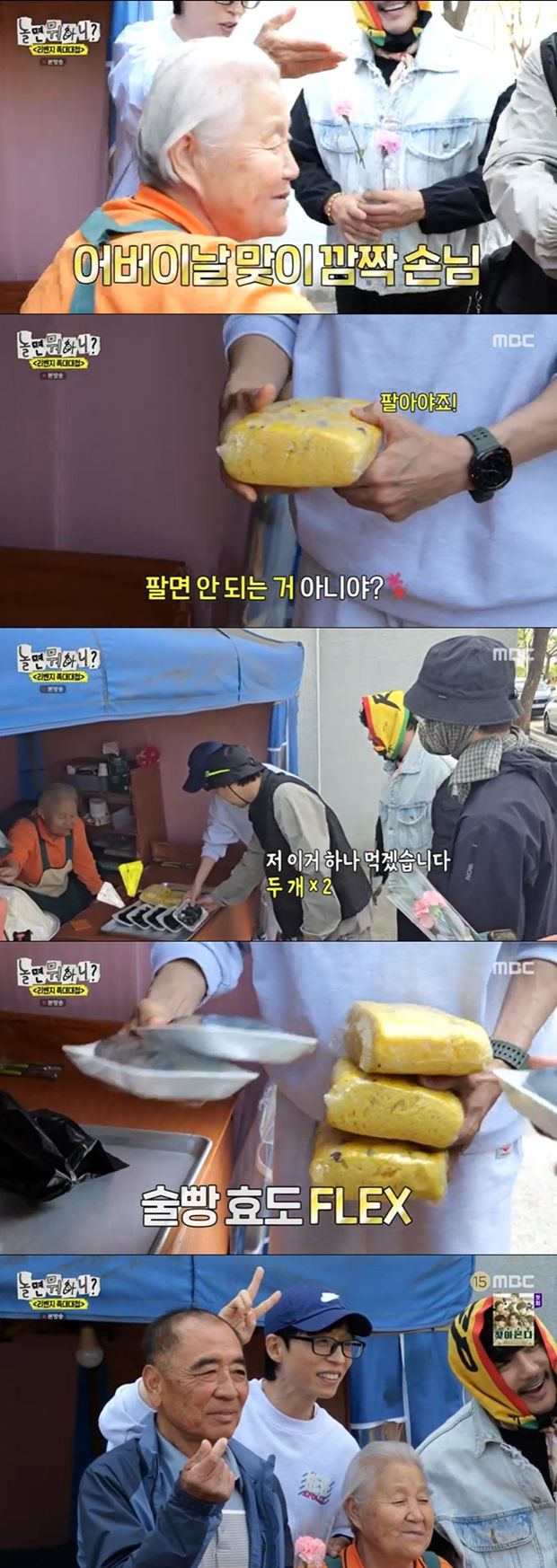유재석은 가지고 있는 5만 원으로 술빵을 구매했고, "저희가 다 사 갈게요"라며 스태프들의 술빵까지 모두 구매하는 선행을 베풀었다.