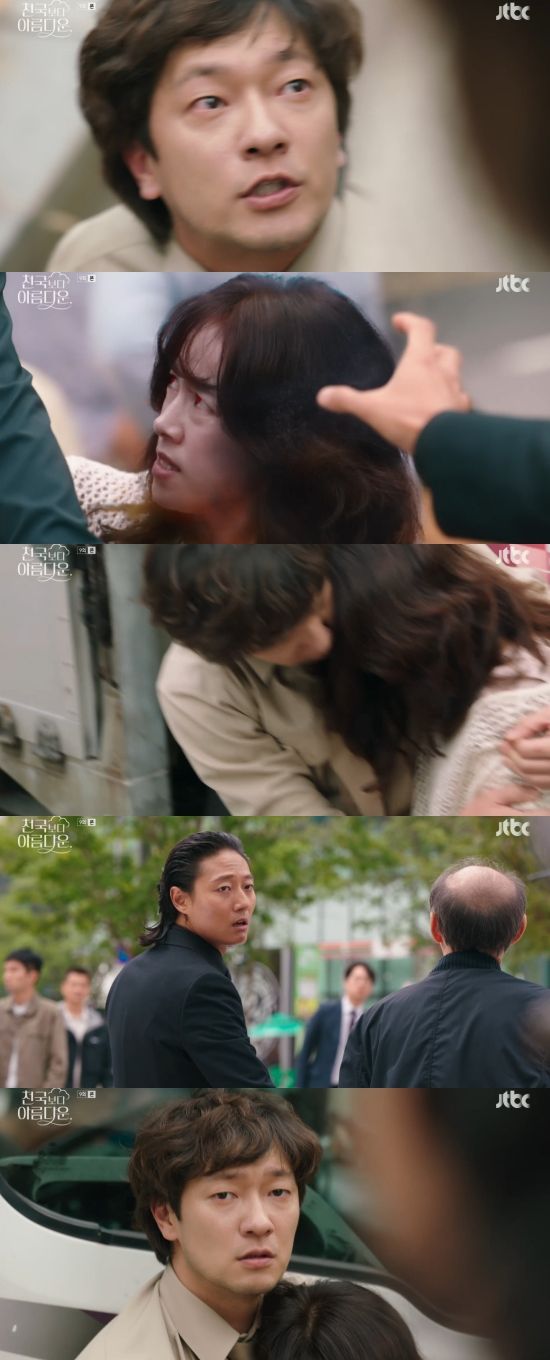 17일 방송된 JTBC 토일드라마 '천국보다 아름다운' 9회에서는 고낙준(손석구 분)이 강정구(정진각)의 정체를 알고 분노한 모습이 그려졌다.