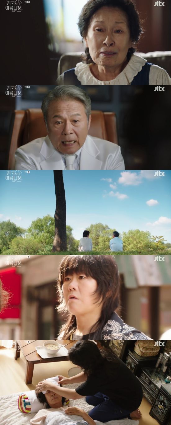 17일 방송된 JTBC 토일드라마 '천국보다 아름다운' 9회에서는 이영애(이정은 분)가 이해숙(김혜자)가 자신의 딸이라는 사실을 알게 된 모습이 그려졌다.
