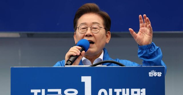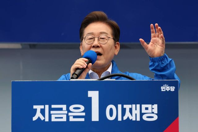 이재명 더불어민주당 대통령 후보가 지난 17일 광주 서구 김대중컨벤션센터 광장에서 열린 집중유세에서 연설하고 있다 / 뉴스1