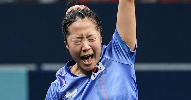 대한민국 탁구 대표팀 신유빈 선수가 2024년 8월 1일 오전(한국시간) 프랑스 파리 사우스 파리 아레나 4에서 열린 '2024 파리올림픽' 탁구 여자 단식 16강 미국의 릴리 장 선수와의 경기에서 기뻐하고 있다. 기사와 무관 / 뉴스1