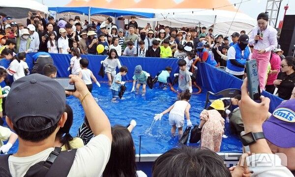 이날 오후 3시께 어린이들을 위한 프로그램인 자리돔 맨손잡기 체험도 운영됐다.