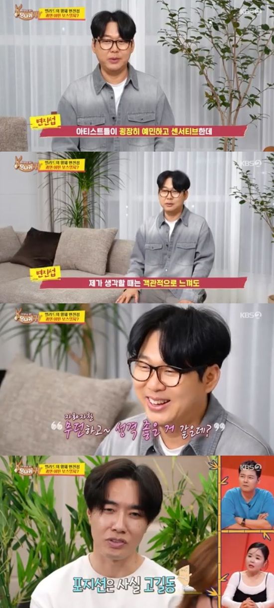 이날 변진섭은 "아티스트들이 예민하고 센서티브한데 제가 생각할 때 객관적으로 느껴도 저는 무던하고 성격 좋은 거 같은데"라고 말했다.