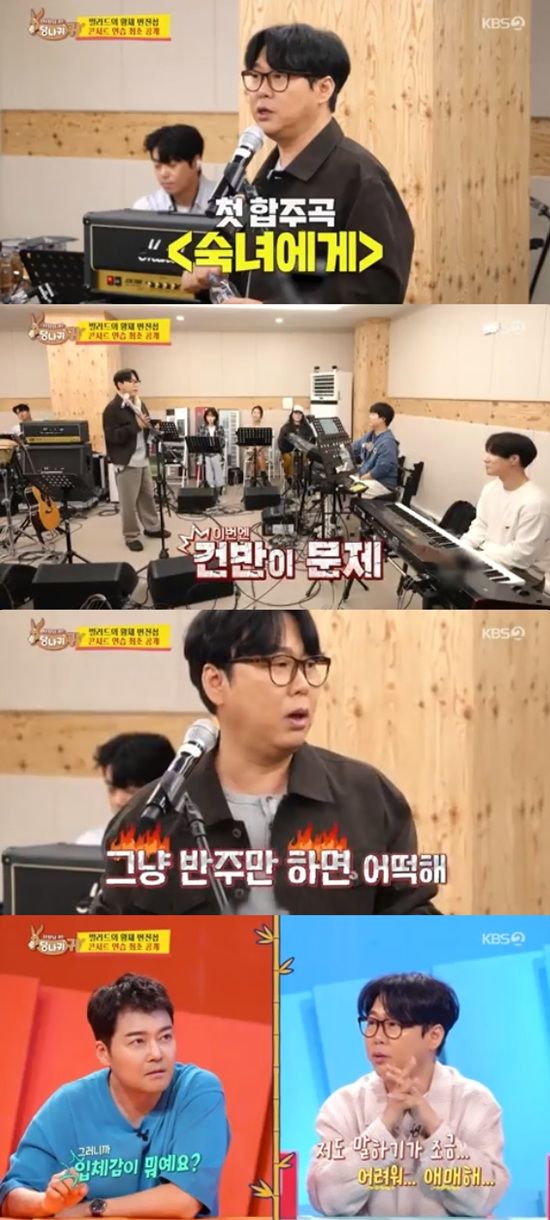 변진섭은 입체감에 대해 "우리 멤버들은 안다. 제가 하도 얘기를 해서"라며 "저도 말하기가 조금 어렵다. 그냥 연주하지 말고 여기에 빠져서 하자는 거다"라고 말했다.