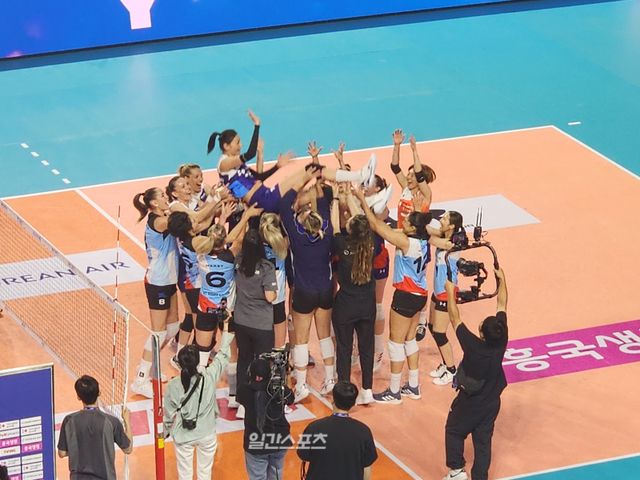 김연경은 이날 1·3세트 감독으로 나서며 작전판에 'ENJOY(즐기다)'라는 문구를 새겼다. 그는 "그게 작전이었다. (스타 팀) 선수들이 다운돼 있을 때 '그게 가장 중요하다'라며 그 단어를 보여줬다"라며 웃어 보였다.