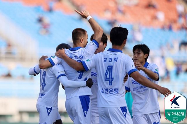 인천은 18일 오후 4시 30분 안산 와~스타디움에서 열린 안산 그리너스와 하나은행 K리그2 2025 12라운드 원정 경기에서 무고사와 박승호의 득점에 힘입어 2-0으로 이겼다.