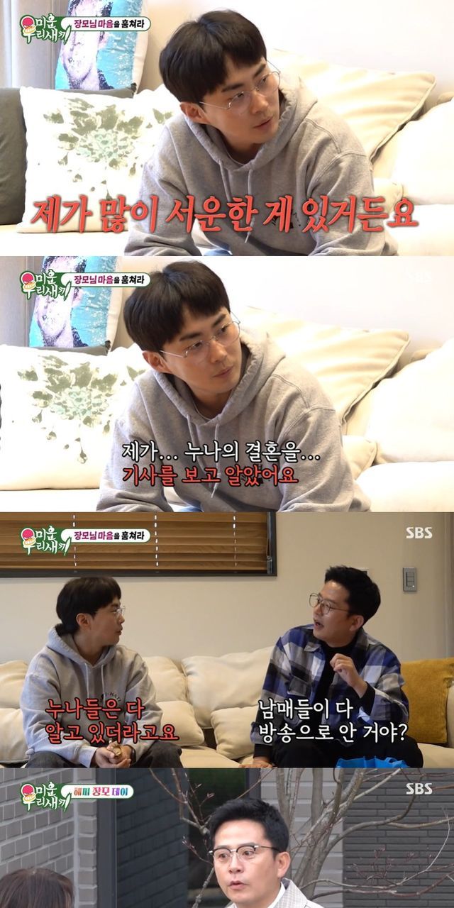 예비 처남은 "제가 누나의 결혼을 기사를 보고 알았다. '미우새' 보니까 7월 13일이라더라. 남매 단톡방이 있는데 누나들은 다 알고 있더라. 저는 가족인데"라며 서운함을 털어놨고, 김준호는 "미안하다"며 사과했다.