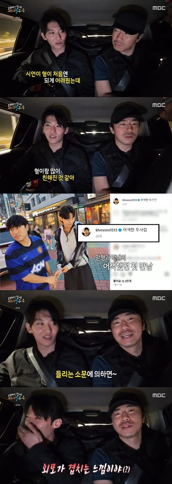 그는 "예전에 형 그 때 기억하냐"고 물었고, 이시언은 "인도 다녀와서 회식할 때"라며 "처음 만났을 때였다. 그것도 우연히 길에서"라고 회상했다.