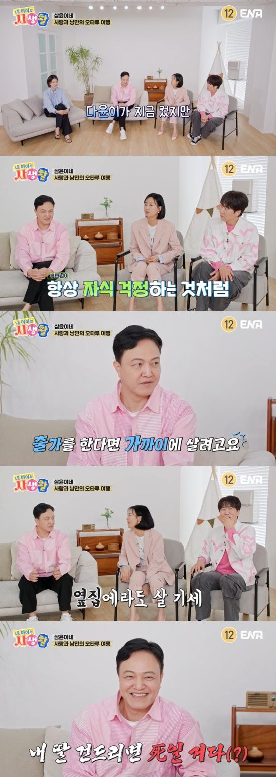 세 딸 중 다윤 양을 '최애'로 꼽은 정웅인은 "다윤이가 지금 컸지만 아직도 아기 같다. 우리 엄마가 아직도 '밖에 나가면 조심해'라고 말씀하시는 것과 똑같다"며 "다윤이가 출가한다면 가까이에 살려고 한다"고 말했다.