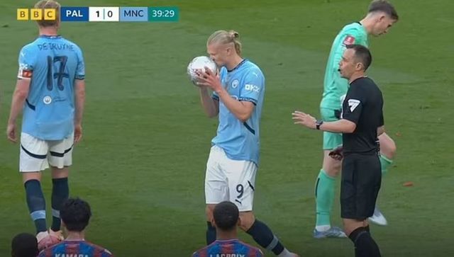 페널티킥이 선언된 후 홀란은 공을 안고 페널티 지역으로 향했다. 순간 대부분은 그가 직접 찰 것이라 예상했지만, 그가 공에 입을 맞춘 뒤 동료 마르무시에게 넘기는 장면이 중계화면에 포착됐다.