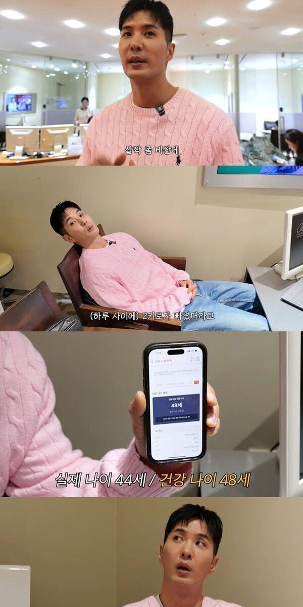 검진을 위해 18시간 동안 금식하며 하루 만에 2kg이 빠져 73kg이 되었다는 그는 이번 검진이 생일 기념으로 받는 조금 더 비싼 프리미엄 검진이라고 설명했다. 2~3년 전에 마지막으로 건강검진을 받았을 당시 실제 나이 44세보다 건강 나이가 48세로 나왔다며 "40살 넘으면 내 몸이 내 몸이 아니다"라고 솔직하게 말하기도 했다.
