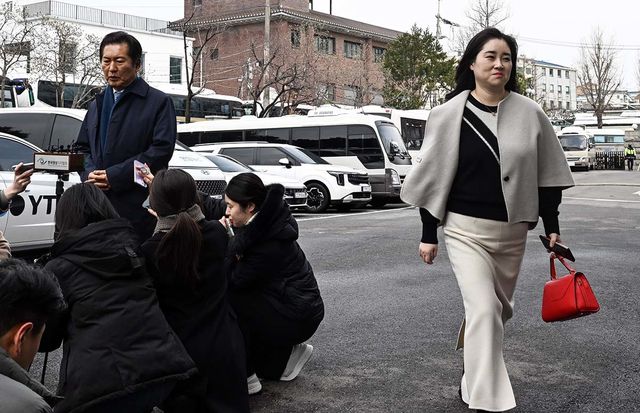 윤석열 대통령 측 김계리 변호사가 2월 25일 서울 종로구 헌법재판소 대심판정에서 열린 윤석열 전 대통령 탄핵심판 최종 변론에 출석해 대화하고 있다. / 뉴스1