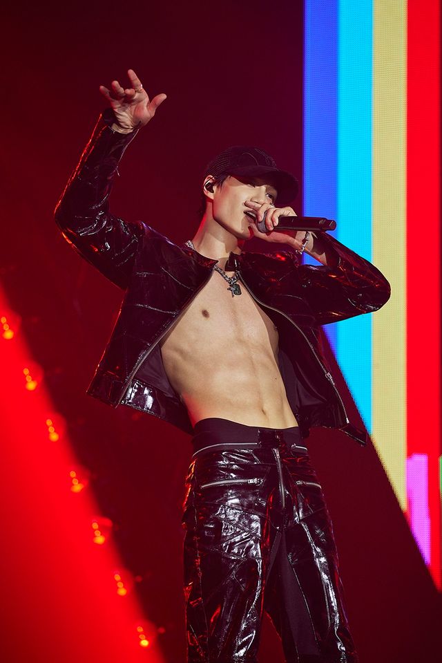 더불어 거대한 거울 세트 앞 유려한 독무 및 16인 댄서와의 군무가 어우러진 'Sinner'(시너), 무빙 슬로프 리프트 위 절제된 섹시미를 발산한 'Slidin''(슬라이딩), 기울어진 턴테이블 구조물에 오른 채 펼친 스윗한 매력의 'Peaches'(피치스), 레이저 이펙트로 뒤덮인 슬로프 연출과 파워풀한 퍼포먼스가 조화를 이룬 'Bomba'(봄바), 초대형 LED 스크린 속 콘셉추얼한 타이포그래피로 리듬감을 시각화한 'Rover'(로버)까지 총 23곡의 감각적인 스테이지로 관객들에게 짜릿한 '카이표 도파민'을 선물했다.