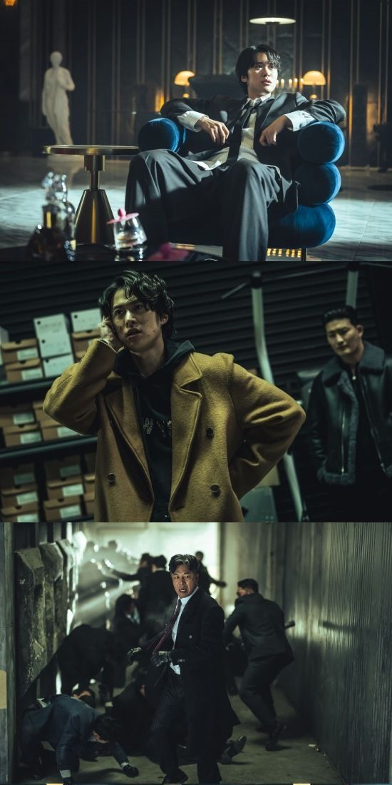 공개된 스틸에는 봉산 패밀리의 수장 구봉산(안길강)과 후계자 구준모(공명), 조직의 어두운 일을 처리하는 심성원(이범수), 광장의 숨은 손 차영도(차승원)의 모습이 담겼다.
