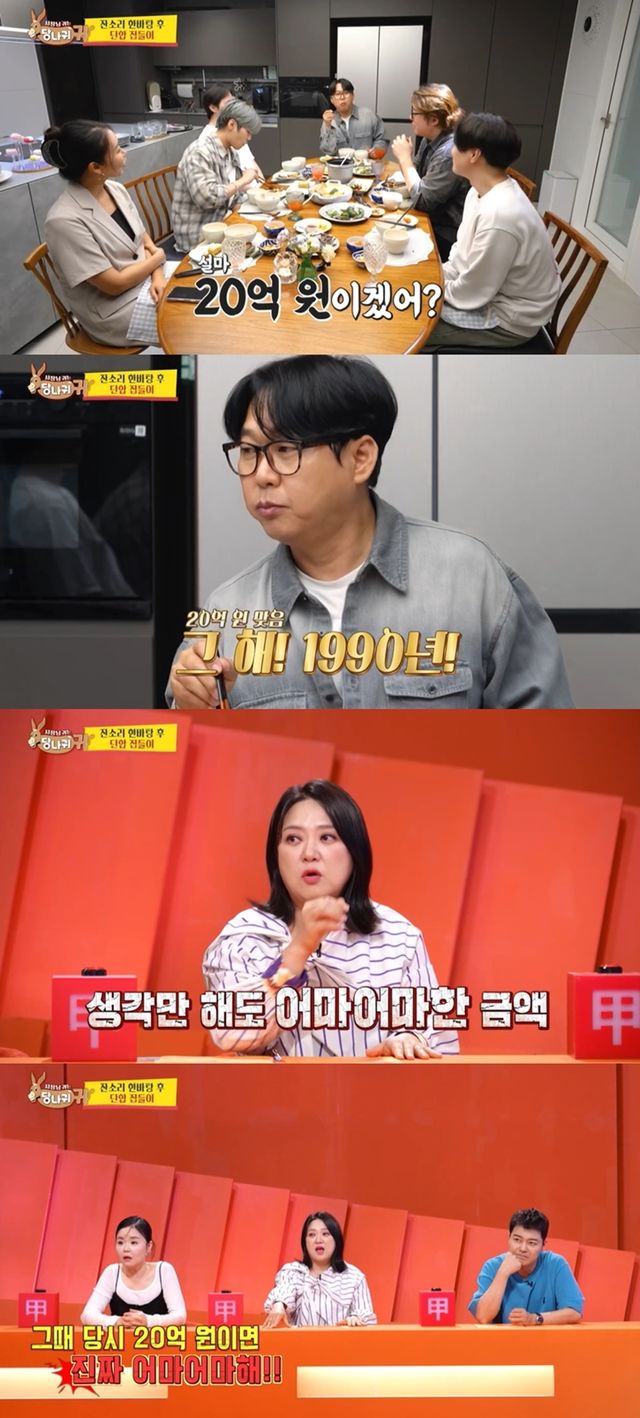 변진섭은 "항간에는 앨범 수익만 20억이었다"라는 물음에 동의하며 "1990년도에 맞았다"라고 말했다. 이에 모두가 "그때 당시 20억이면 어마어마하다"라며 놀라자, 박명수 또한 "그때 당시 아파트가 3억이었다"라고 말했고, 김숙과 박명수는 "200억이 넘는다"라고 전했다.