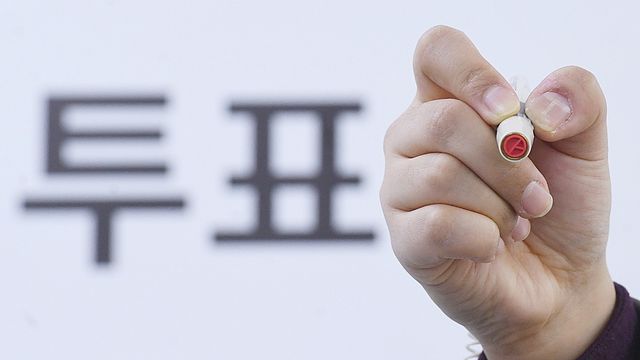 서울 종로구 청운효자동 자치회관에 마련된 청운효자동 제3투표소에서 종로구청 관계자가 기표 도장을 들어보이고 있다. 기사 이해를 돕기 위한 자료 사진 / 뉴스1