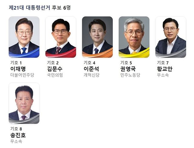 다음은 21대 대통령 선거에 출마한 후보들이다.
