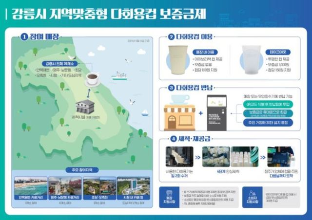 이번 협약은 ‘지역 맞춤형 다회용컵 보증금제’의 첫 사례로, 놀이공원 등 닫힌 공간이나 특정 커피브랜드 매장에서 진행되는 체계와 달리 지자체 전 지역의 커피전문점에서 운영되는 개방형 체계라는 점에서 의미가 크다.