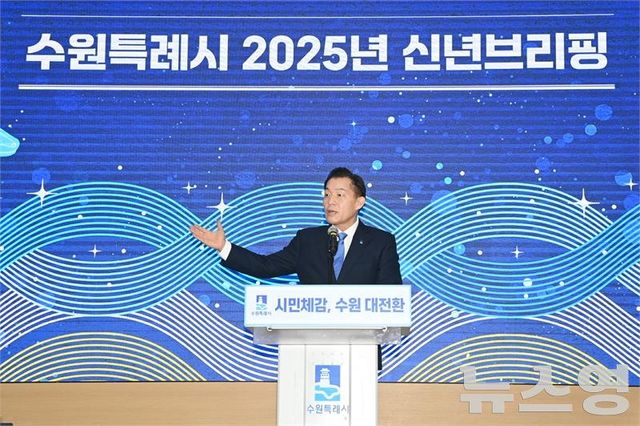 이재준 수원특례시장이 신년브리핑을 하고 있다/사진=수원특례시