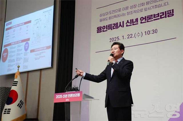 이상일 용인특례시장이 신년브리핑을 하고 있다./사진=용인특례시