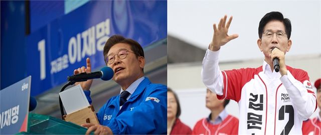 제21대 대통령 후보가 연설하는 모습(좌:더불어민주당 이재명 후보, 우:국민의힘 김문수 후보)/사진=각 당 홈페이지