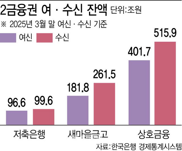 저축은행의 이런 흐름은 다른 2금융권과도 대비된다. 새마을금고의 여·수신은 각각 180조원대, 260조원대를 유지하고 있다. 상호금융은 3월 말 기준 여·수신이 각각 400조원, 515조원을 넘어섰다.