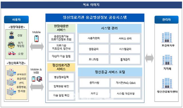 이에 정부는 제2차 정신건강복지 기본계획(2021∼2025년)의 하나로, 지역 기반의 정신 응급 대응체계 확립을 위한 과제로 추진됐다. 정신 응급환자 발생 시 이송 및 입원이 원활히 이루어질 수 있도록 기관 간 필요한 정보를 실시간으로 공유할 수 있는 시스템 구축이 최종 목표다.