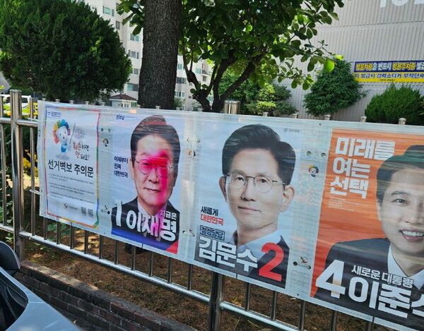 한편 전국에서도 선거 벽보 훼손 사례가 이어져 경찰이 관련 수사를 이어가고 있다. 이날 경찰청에 따르면 제21대 대통령 선거와 관련해 선거 현수막과 벽보를 훼손한 185명이 단속됐고, 이중 1명이 구속됐다.