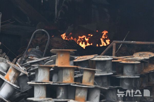 소방 당국은 이날 오전 공장 내부 최초 발화 지점으로부터 약 150m 떨어진 공간에서 고무와 천·철사의 혼합물이 '공룡알'처럼 둥근 덩어리가 돼 불타고 있는 것을 확인했다.