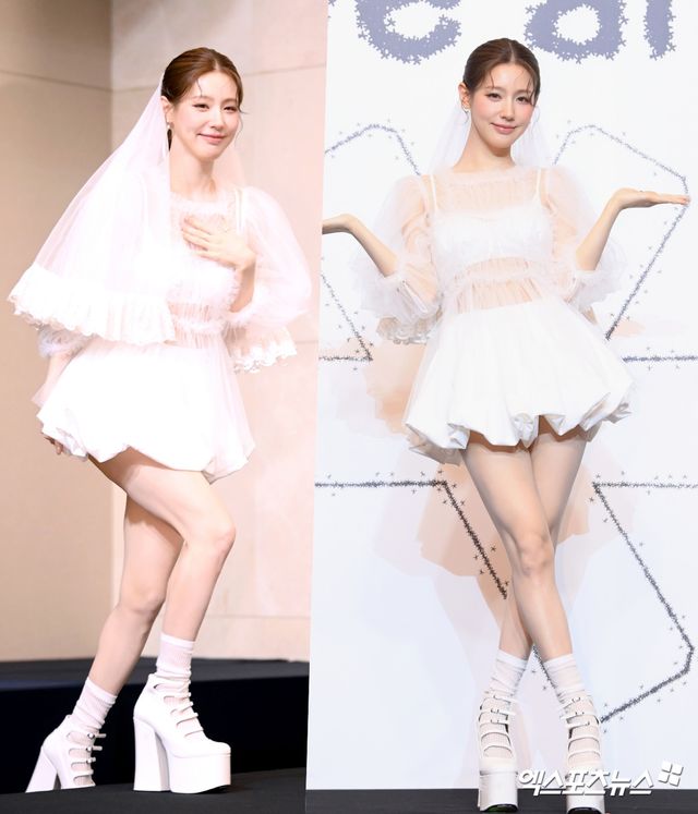 이날 기자간담회에 참석한 아이들 미연이 포토타임을 갖고 있다.