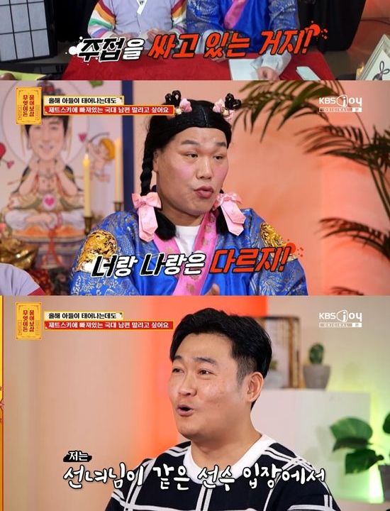 이수근은 "주접을 싸고 있는 거지, 누가 시키지도 않은 주접을 혼자 다 싸고 있다"고 시원한 발언을 날렸다. 또 그는 "어느 정도 알고 결혼한 거 아니냐"고 물었다.