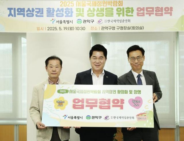 이에 구는 지난 19일 서울시, 한국외식업중앙회 관악구지회와 ‘지역상권활성화 및 상생’을 위한 협약을 체결했다. 이번 협약으로 박람회 가든투어 참여자가 7개 지정 정원 중 6개 이상에서 스탬프 인증을 받고 지정 업소에 제시하면 할인 혜택을 받을 수 있다.